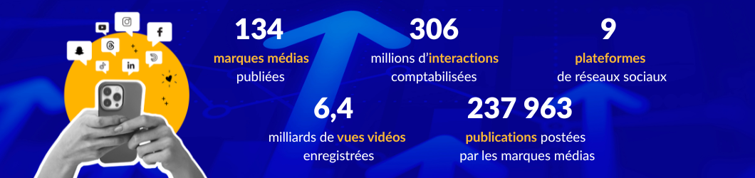 + de 130 marques médias font déjà partie de ce baromètre, qui repose sur deux classements regroupant 7 indicateurs de référence sur 9 réseaux sociaux : Facebook, Instagram, TikTok, Snapchat, LinkedIn, YouTube, Threads, Dailymotion et Pinterest.
